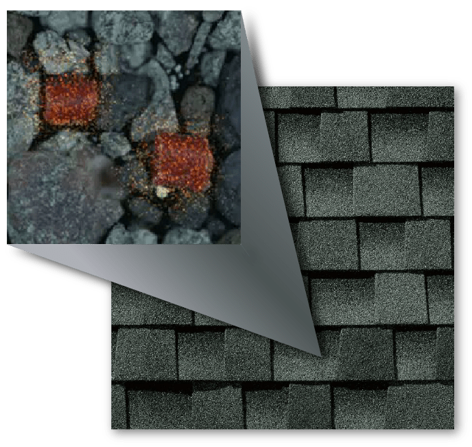 Time-Release Algae-Fighting Technology is proprietary to GAF. Specially engineered capsules are infused throughout with thousands of copper microsites. These breakthrough capsules release algae-fighting copper efficiently, over time, for long-lasting algae-fighting power.